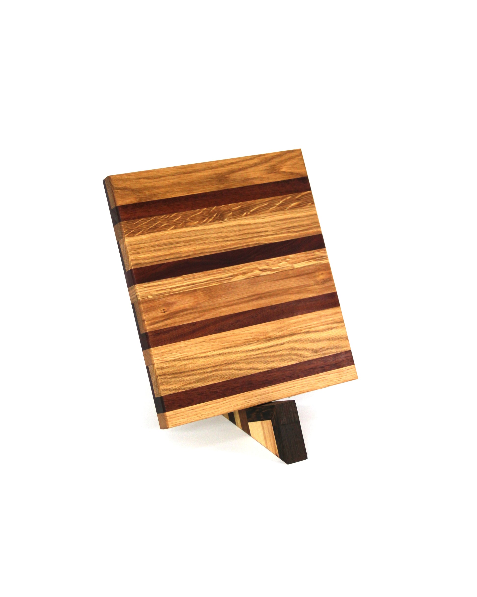 Deze handgemaakte snijplank (330 x 290 x 35 mm) is niet alleen perfect om op te snijden, maar dient ook uitstekend als stijlvol presenteerplateau voor kaas of charcuterie. De combinatie van duurzaam Esdoorn en Iroko hardhout maakt deze snijplank plank een echte blikvanger.